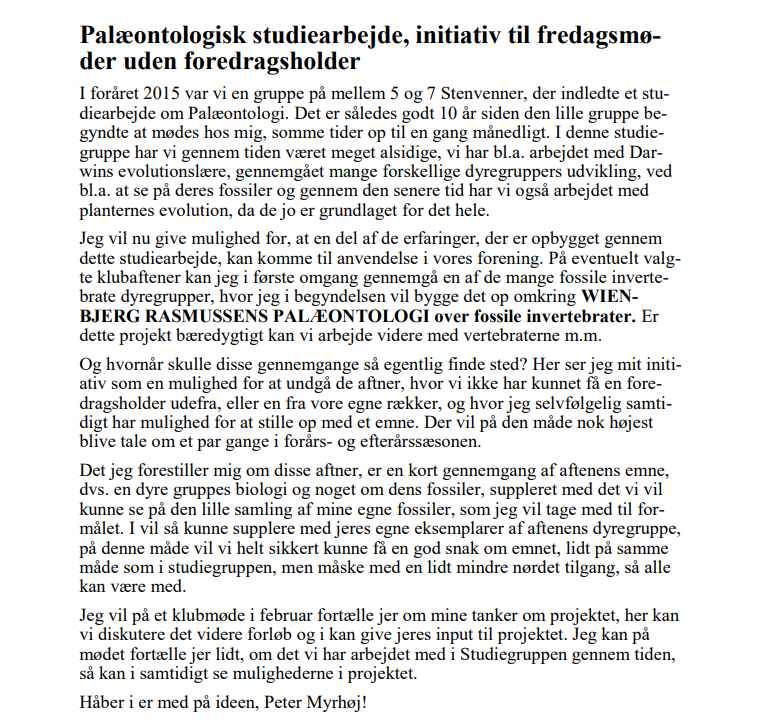 Fredag den 13. marts vil Peter Myrhøj fra Stenvennernes bestyrelse starte ’Palæontologisk studiearbejde’ med en introduktion: hvordan bygger vi projektet op, og hvad kan palæontologien fortælle os, noget om hvordan fossiler dannes. Se mere på side 13 i Lapidomanen nr. 01 – 2026 eller her.